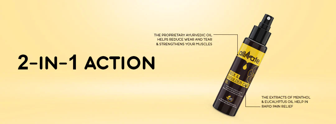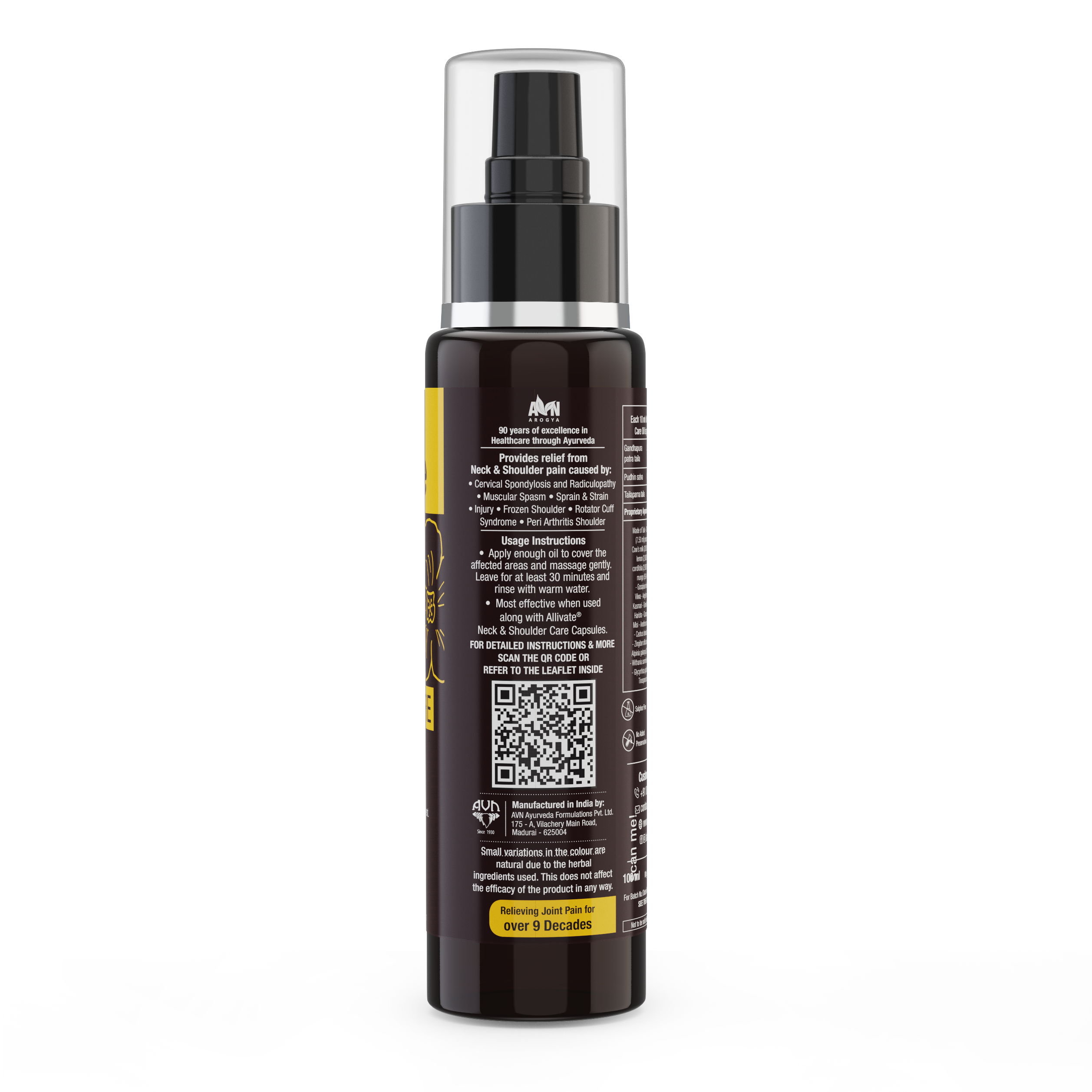 Allivate® Neck & Shoulder Care Oil provides relief from pain & stiffness in the neck, back of your head, shoulders, and arms, caused by,